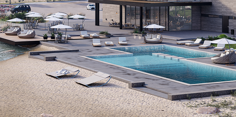 Terraza, muelle y pileta, desde los que se puede apreciar,